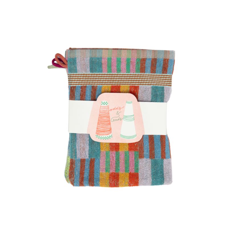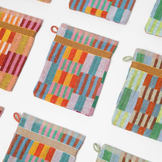 When factories dye yarns to weave textiles, they often make extra – just in case – but these often go unused. Odds & Ends washcloths are designed to make the most of these leftovers, creating beautiful and unexpected colour combinations.