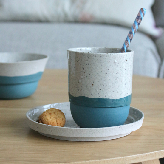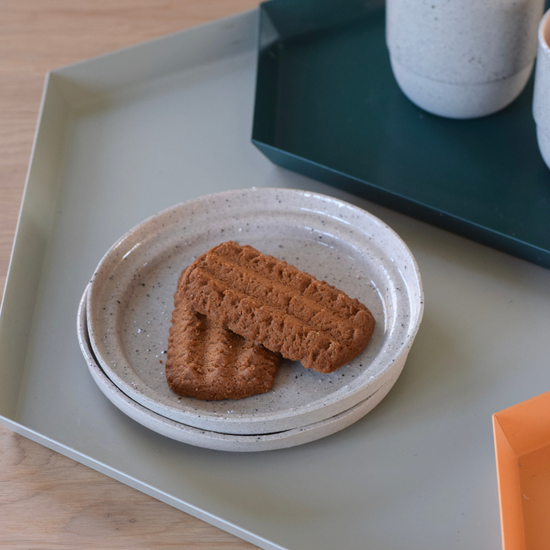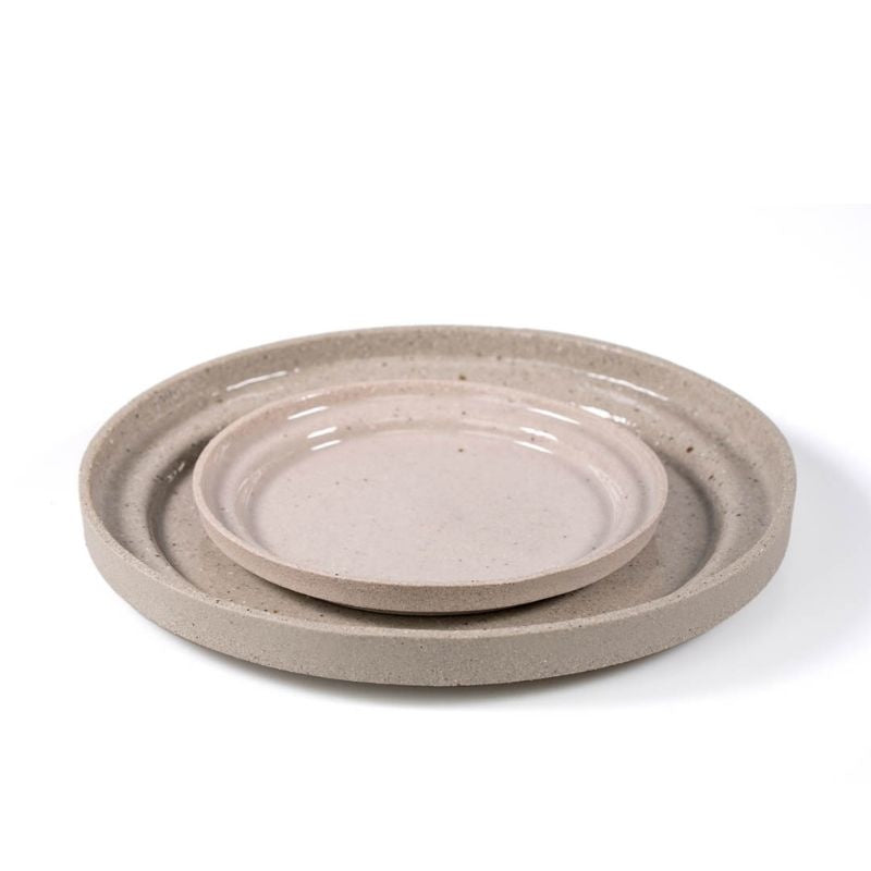 The special thing about the Leonie plate is that the porcelain is partly mixed with Maas clay. This gives the pottery a beautiful, speckled sand color. This clay comes from the village where Elke was born and raised. The plate is beautiful in its simplicity and also locally acquired and handcrafted.