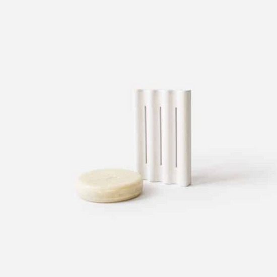 The Olivia soap dish from House Raccoon is made of high-quality gypsum composite mixed with natural river sand quartz to give the soap dish a subtle sand-sea look. It will weather over time, making the natural grains of sand visible. The soap dish has elongated waves with openings that allow your soap or shampoo bar to drain and dry properly. This way you can enjoy it for even longer.