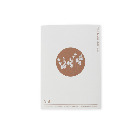 The white flowers fit perfectly in an interior with light earth tones and natural materials, but also against a colored wall a beautiful image. You can not only make a bouquet with it, but the Field Flowers white are also so beautiful as a wreath or decoration for a (wedding) party. Or give your own twist to this bouquet and give them color. Grab paint, crayons or pencils and give the flowers, if they are still in their paper, your favorite color. Let the paper dry, remove the flowers from their shape and fold them according to the instructions.