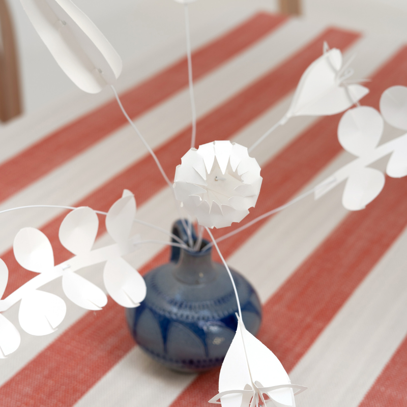 The white flowers fit perfectly in an interior with light earth tones and natural materials, but also against a colored wall a beautiful image. You can not only make a bouquet with it, but the Field Flowers white are also so beautiful as a wreath or decoration for a (wedding) party. Or give your own twist to this bouquet and give them color. Grab paint, crayons or pencils and give the flowers, if they are still in their paper, your favorite color. Let the paper dry, remove the flowers from their shape and fold them according to the instructions.