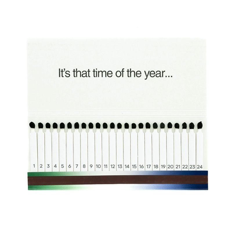 The mo man tai matchbook advent calendar contains matches numbered 1 through 24, so you can light one or more candles each day in December to count down to Christmas.