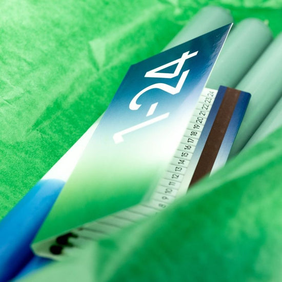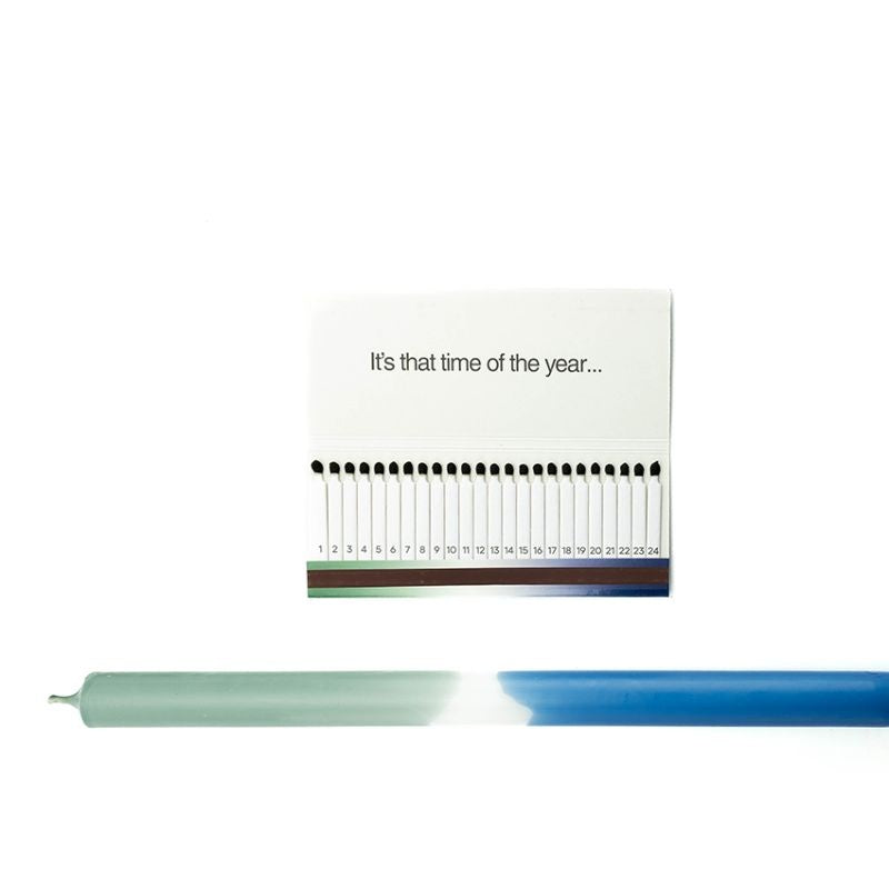 The matchbooks come in different colours to match the beautiful dip dye candles from mo man tai. The advent calendar and candle(s) combine to make a perfect pre-Christmas gift.