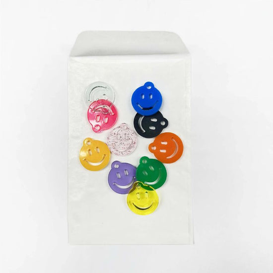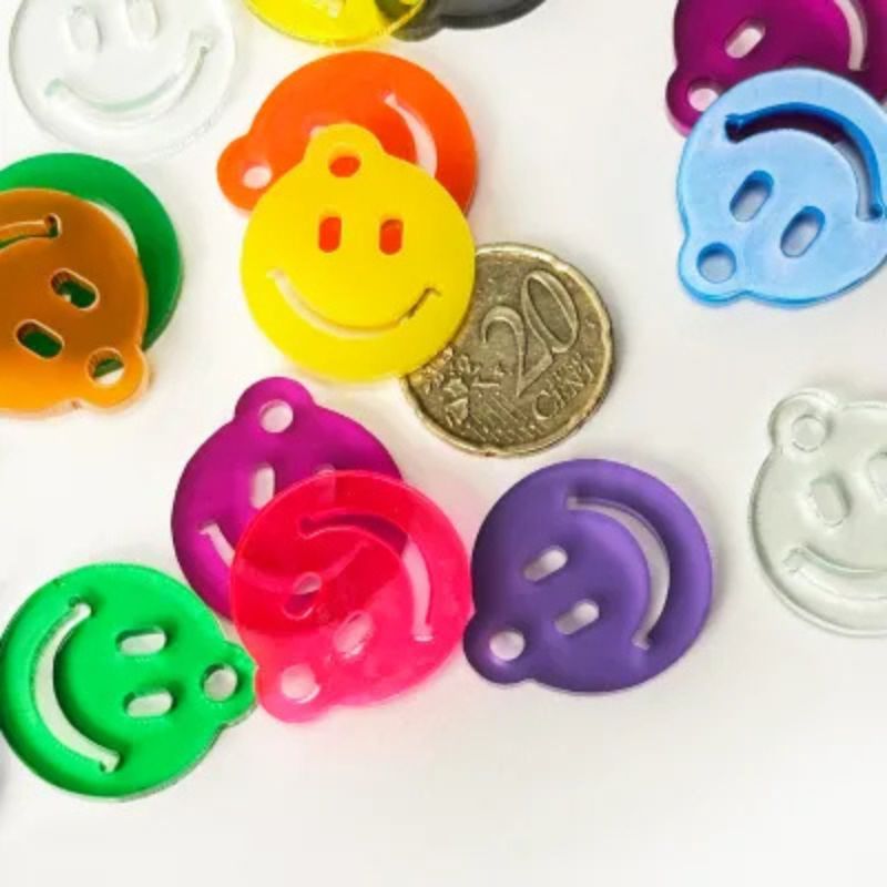 This cute set of smileys will add some color to your day. Use as a keyring, hang it on your bag or add a smiley to a card or letter to someone who could use a friendly smile.