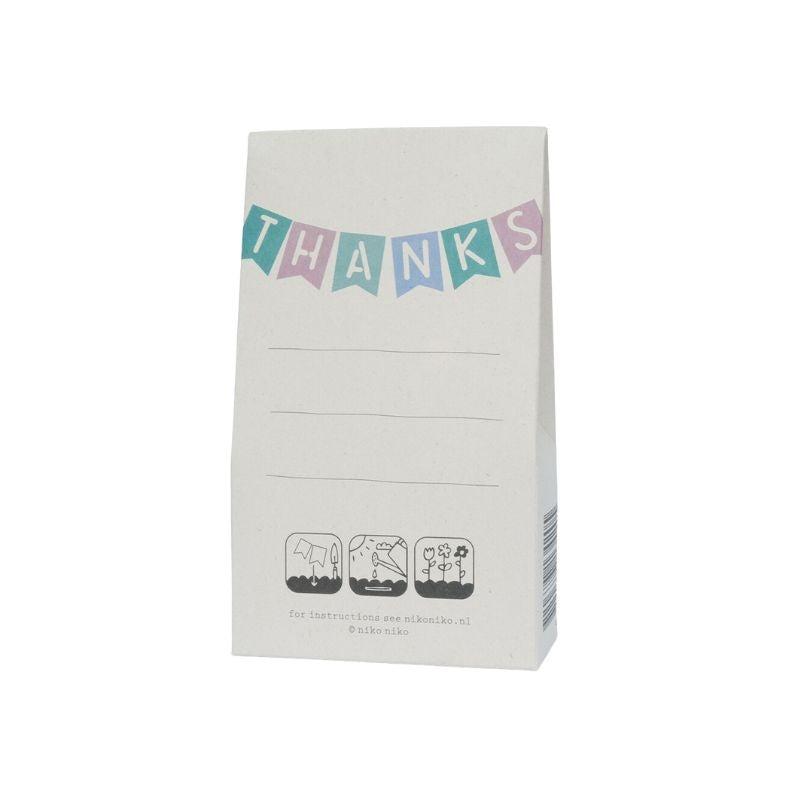 Looking for an original and sustainable thank you gift? The Growing Garland – Thanks is just that. This festive garland is not only fun to hang up, but is also full of surprises. Each letter of the word "THANKS" is made of handmade paper with a mix of wildflower seeds. When the garland has done its job, you can simply plant the letters in the soil. With a little sun, water and patience, colorful flowers will grow from it – a lasting memory of a small gesture of gratitude.