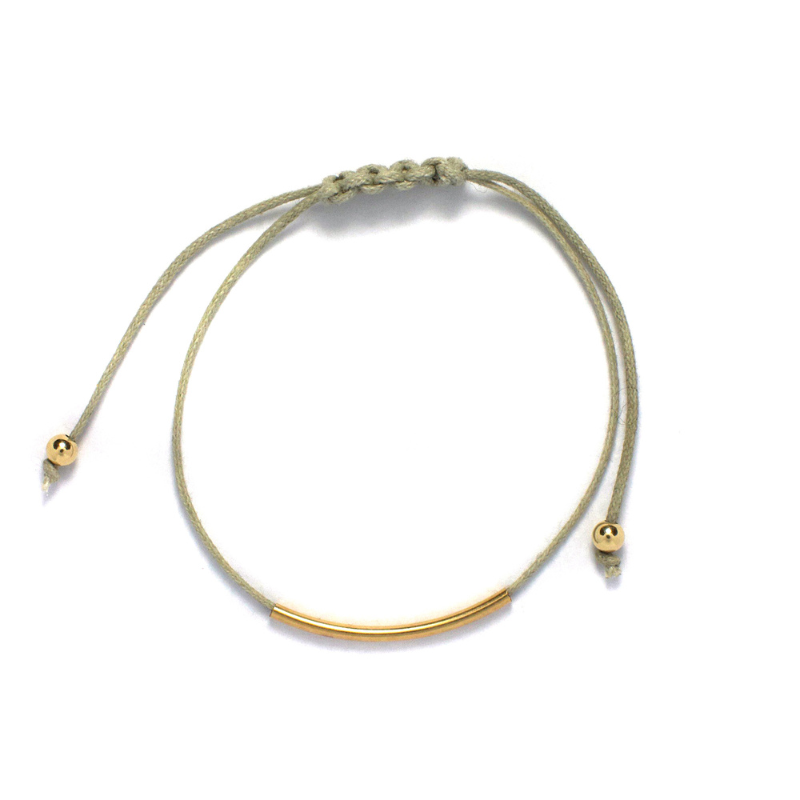 Dewi is a cord bracelet with a gold-filled or silver-colored tube. The sliding knot in the wax cord makes the bracelet fit almost every wrist. The bracelets are handmade in the Netherlands. They are packed in a beautiful box and therefore also perfect as a gift.