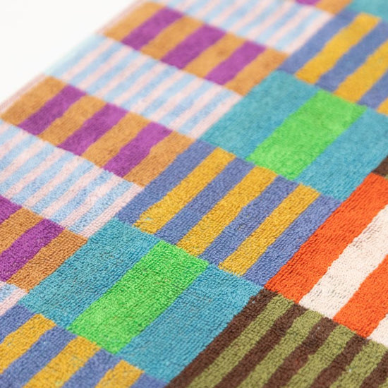 Wanneer fabrieken garens verven om textiel te weven, maken ze vaak wat extra – voor het geval dat – maar die blijven vaak ongebruikt. De badhanddoek uit de Odds & Ends serie zijn ontworpen om het maximale uit deze restanten te halen, waardoor prachtige en onverwachte kleurencombinaties ontstaan.