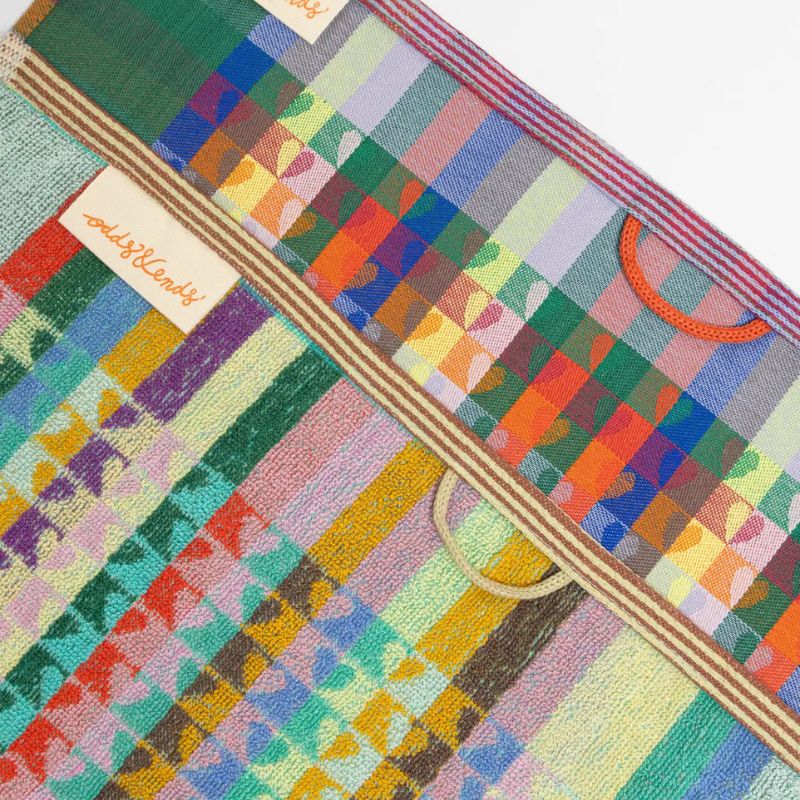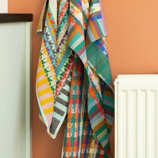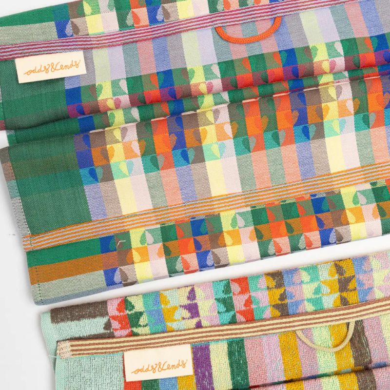 Wanneer fabrieken garens verven om textiel te weven, maken ze vaak wat extra – voor het geval dat – maar die blijven vaak ongebruikt. De Odds & Ends theedoek is ontworpen om het maximale uit deze restanten te halen, waardoor prachtige en onverwachte kleurencombinaties ontstaan.