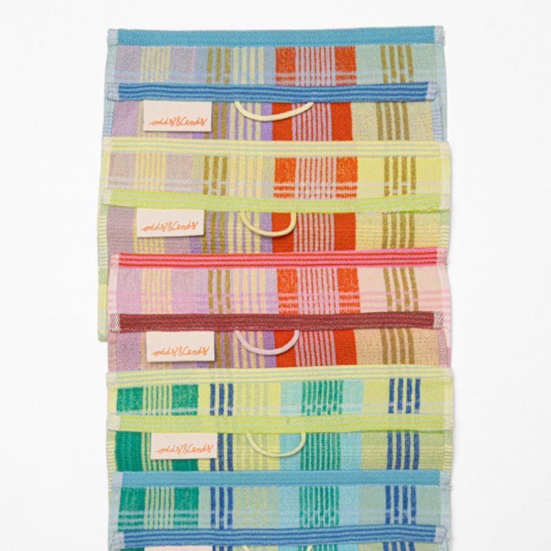 Wanneer fabrieken garens verven om textiel te weven, maken ze vaak wat extra – voor het geval dat – maar die blijven vaak ongebruikt. De Odds & Ends multidoek is ontworpen om het maximale uit deze restanten te halen, waardoor prachtige en onverwachte kleurencombinaties ontstaan.De doekjes zijn door het formaat en lusje superleuk als gastendoekje maar ook fijn als vaatdoekje (bijna zonde zo mooi) te gebruiken.
