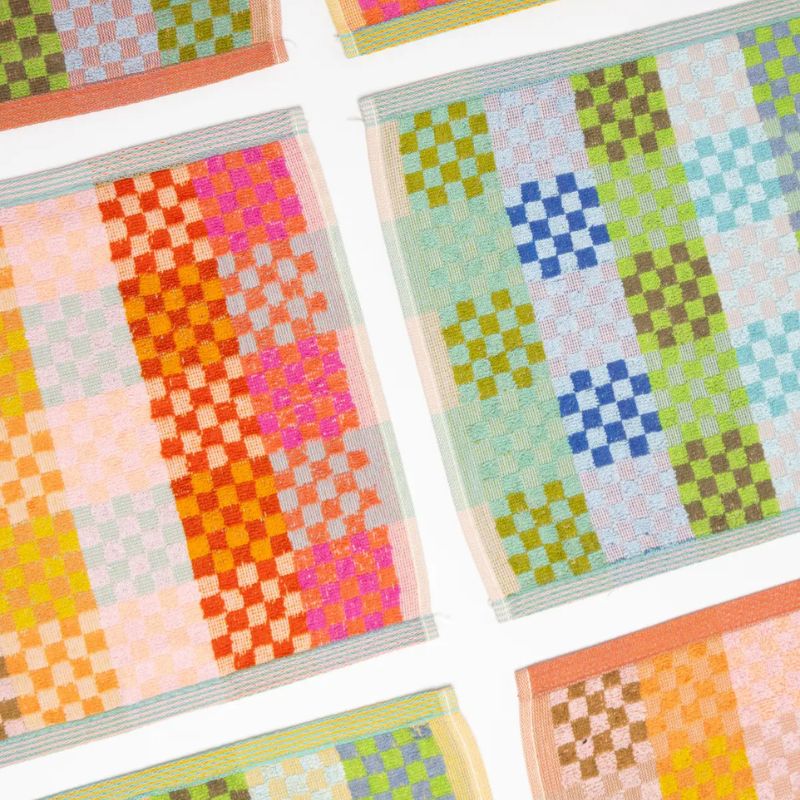 Wanneer fabrieken garens verven om textiel te weven, maken ze vaak wat extra – voor het geval dat – maar die blijven vaak ongebruikt. De Odds & Ends multidoekjes zijn ontworpen om het maximale uit deze restanten te halen, waardoor prachtige en onverwachte kleurencombinaties ontstaan.De doekjes zijn door het formaat en lusje superleuk als gastendoekje maar ook fijn als vaatdoekje (bijna zonde zo mooi) te gebruiken.