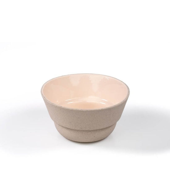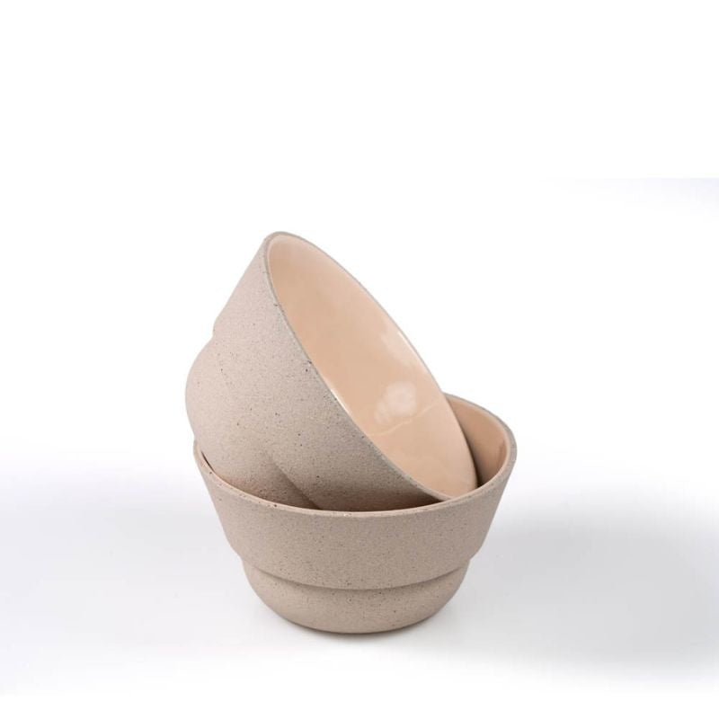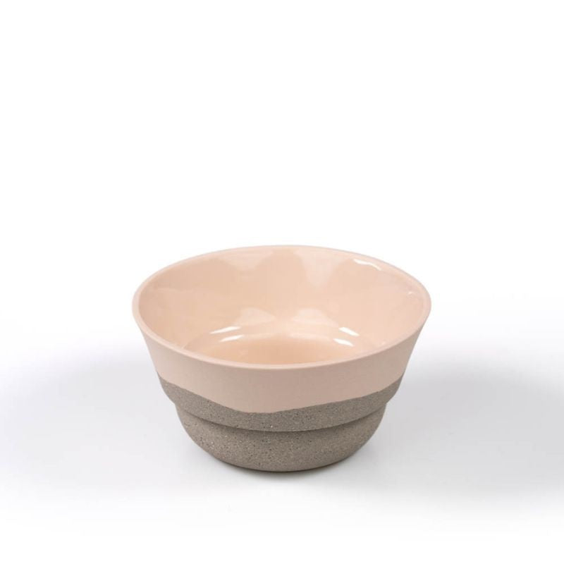 Het bijzondere van kommetje Roos is dat het porselein deels vermengd is met maasklei. Hierdoor krijgt het aardewerk een mooie, gespikkelde zandkleur. Deze klei komt uit het dorp waar Elke is geboren en opgegroeid. Roos heeft een horizontale lijn in het ontwerp en loopt het het naar buiten uit. Hierdoor oogt het kommetje wat breder en krijgt het een verfijnde, open uitstraling.