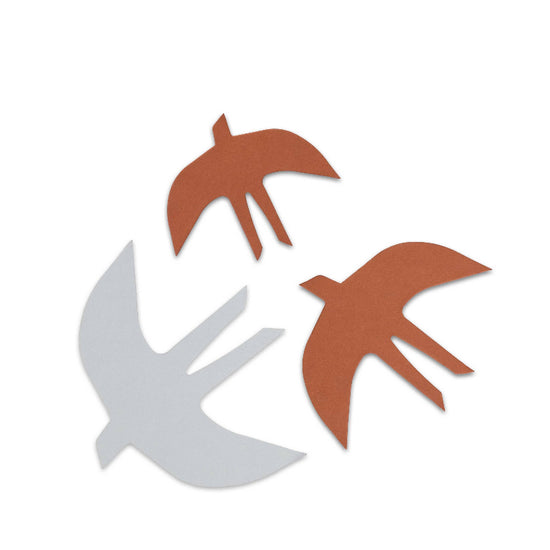 Deze Sverm Birds van Jurianne Matter geven je muur direct een speelse, lichte touch. Gewoon los op een kale muur bevestigen en klaar! De kleine zwaluwen combineren prachtig met hoekige posters en kaders. Door de terra kleur aan de ene kant en de blauwige lichtgrijs aan de andere passen deze zwerm vogels perfect in een ingetogen japandi interieur, maar geven ook een bijzondere touch aan een kinderkamer. Kies je voor een kleur of geef je er net wat meer swung aan door er een om te draaien met een andere kleur. Combineer dan deze Sverm met een of meer sets voor een groots effect.