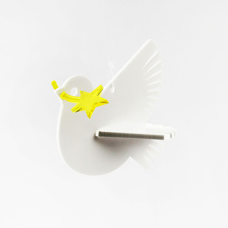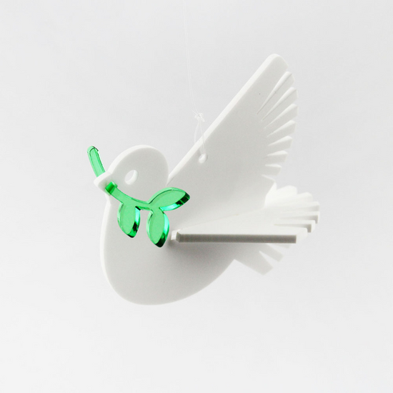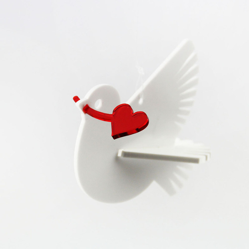 De onderdelen van deze duif zijn gemaakt van rest acryl en is verpakt in een platte, milieuvriendelijke verpakking en is daarom ook erg leuk om als brievenbuscadeautje te versturen.
