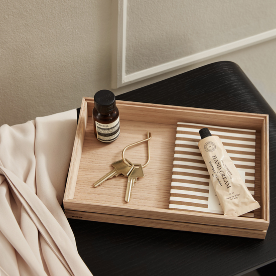 De sleutelhanger van MOEBE is gemaakt van een enkel stuk messing draad en heeft een eenvoudig sluitmechanisme. Met een enkele draai kun je de sleutelhanger openen om er sleutels bij te hangen of te verwijderen. Ondanks het eenvoudige ontwerp is de Key Ring van MOEBE ruim genoeg om 10 sleutels te dragen.