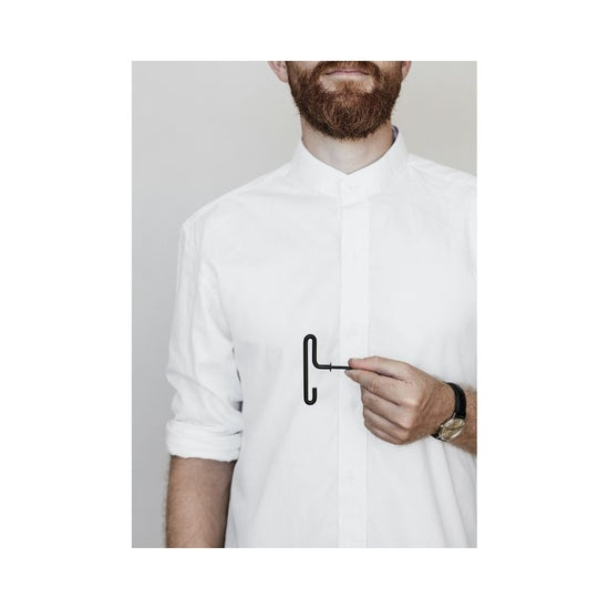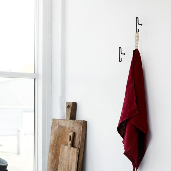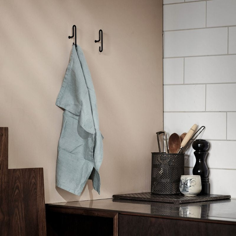 De wandhaakjes van MOEBE is een ontwerp dat slechts bestaat een een doorlopende lijn. Deze eenvoudige maar bijzondere wandhaak heeft twee ophangpunten. Gebruik de grotere bovenkant voor je jas of een grote sjaal en het kleine haakje aan de onderkant voor bijvoorbeeld theedoeken, accessoires of je sleutels.