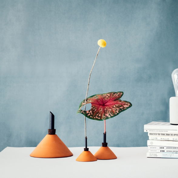 De Consilium vaas van Scandinavia Form is gemaakt van terracotta met een matte afwerking, een zwart koperen halsje en een gebrande kurk. Met een enkele grasstengel, tak, bloem of blad haal je de natuur naar binnen in zijn meest transparante vorm. Ideaal om die afgeknakte bloem in te showcasen of die laatste mooie tak uit een uitgebloeid boeket.