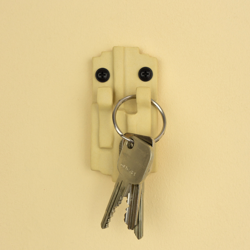 Nosy butter van Studio Daphne Zuilhof is een handgemaakte porseleinen wandhaak. Niet alleen mooi om te zien, maar ook nog eens handig om je spullen aan op te hangen. Nosy laat zijn gezicht graag zien in de keuken, de badkamer of in de gang. Solo al een mooie blikvanger maar helemaal leuk met een paar familieleden. De zwarte oogjes zijn de meegeleverde montage schroeven.
