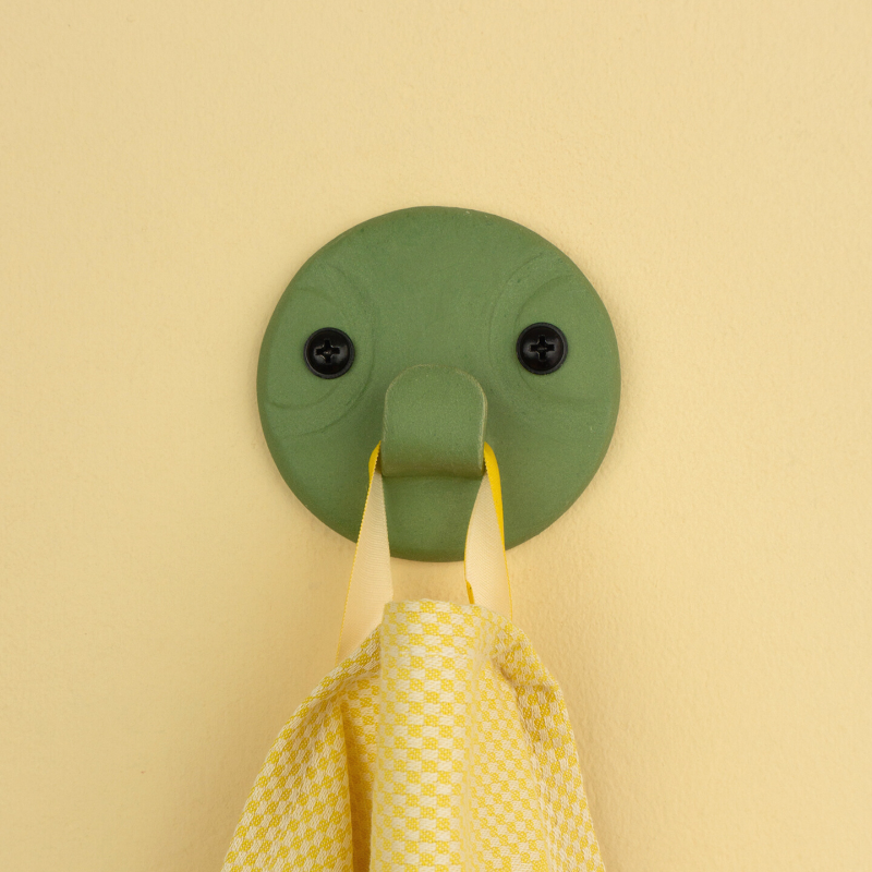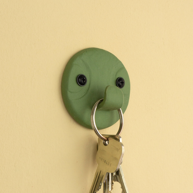 Nosy Green van Studio Daphne Zuilhof is een handgemaakte porseleinen wandhaak. Niet alleen mooi om te zien, maar ook nog eens handig om je spullen aan op te hangen. Nosy laat zijn gezicht graag zien in de keuken, de badkamer of in de gang. Solo al een mooie blikvanger maar helemaal leuk met een paar familieleden. De zwarte oogjes zijn de meegeleverde montage schroeven.