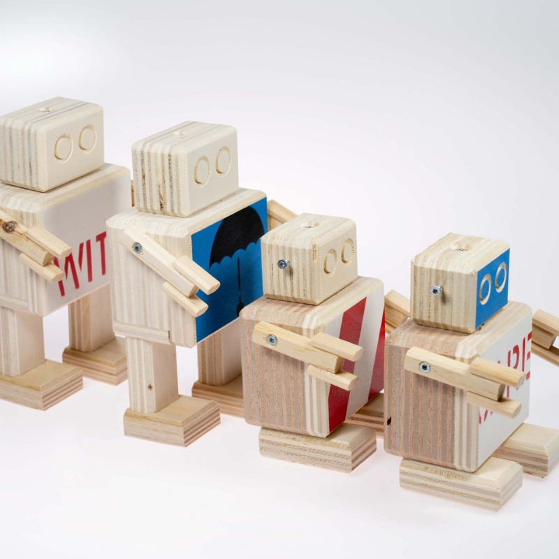 Alle Rijkswachters zijn handgemaakt en gemaakt uit een deel van een transportkrat. Daardoor heeft iedere Rijkswachter zijn eigen look en is er geen hetzelfde. Maar je kunt wel kiezen welke uitvoering je bestelt. Selecteer een kleur/uitvoering; de foto die je dan ziet is van de Rijkswachter die je ontvangt. De armen van deze Rijkswachter kunnen worden bewogen.