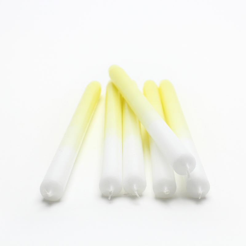 De prachtige gradient kaarsen van mo man tai zijn helemaal on trend. Door het kleurverloop van vanille naar helder geel heb je een mooie sfeermaker in huis. De handgemaakte kaarsen kun je goed combineren met de overige kleuren of style je tafel in dezelfde kleur.